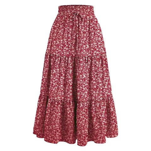 Dames Boho Vintage Bloemenprint Maxi Rok Elastische Hoge Taille Geplooid Zwierig A Lijn Lange Rokken Peuter Vallen 2025 Falda Kort